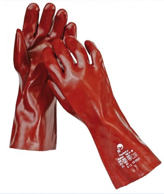 Хімічно стійкі робочі рукавички FULIGULA на трикотажній основі зі 100% бавовни з повним покриттям ПВХ. Рукавички забезпечують високу механічну міцніс...