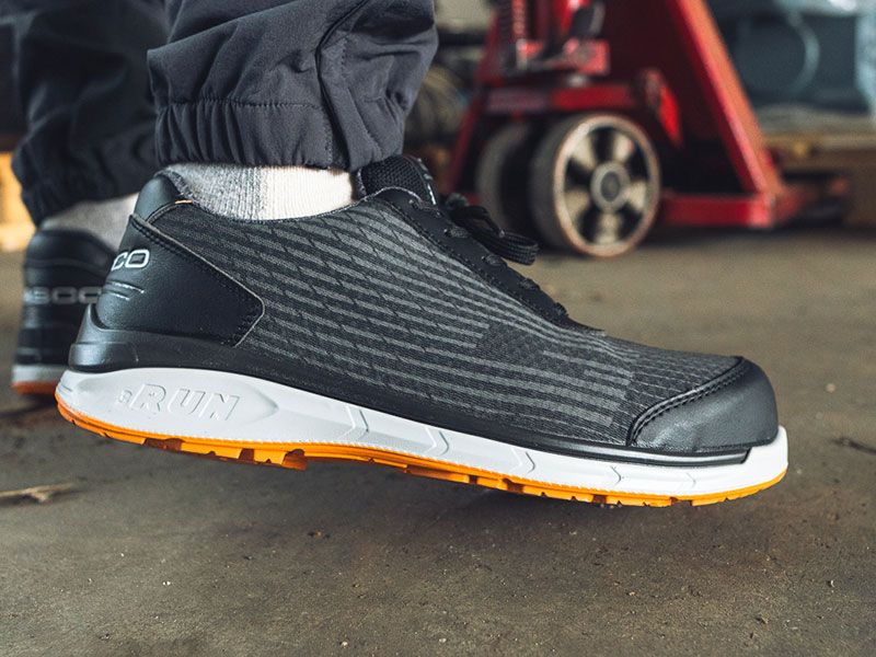 Робочі напівчеревики OROSHI S1P італійського бренду GIASCO повністю безметалеві, мають стійку на нерівних поверхнях підошву та верх із технічної тканини з шовкографічним друком. Модель добре переносить прання у теплій воді, тому доглядати за нею дуже просто.